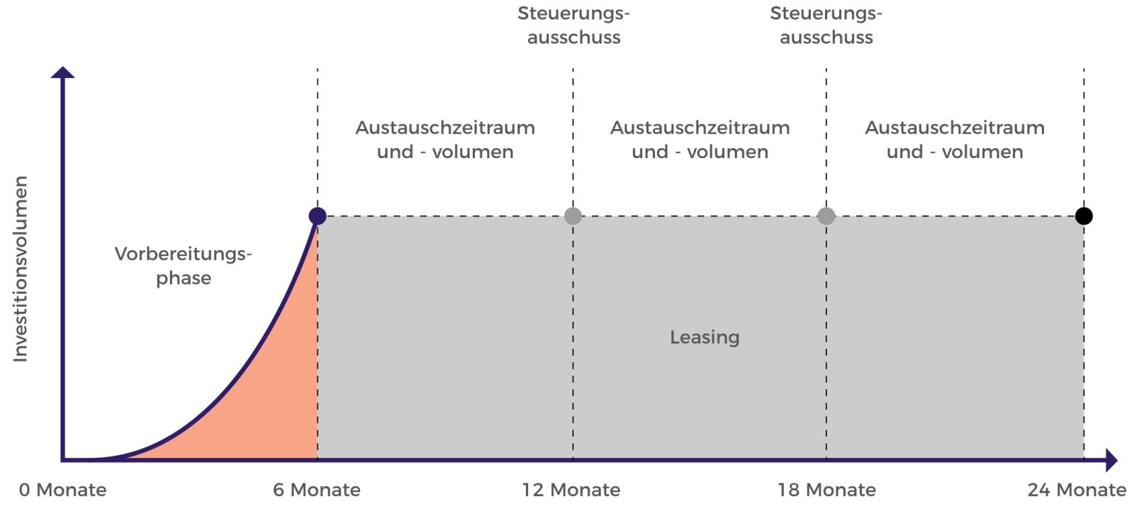 • Teilweise Rückgabe der geleasten Geräte, während der gesamten Laufzeit des Rahmenvertrags.