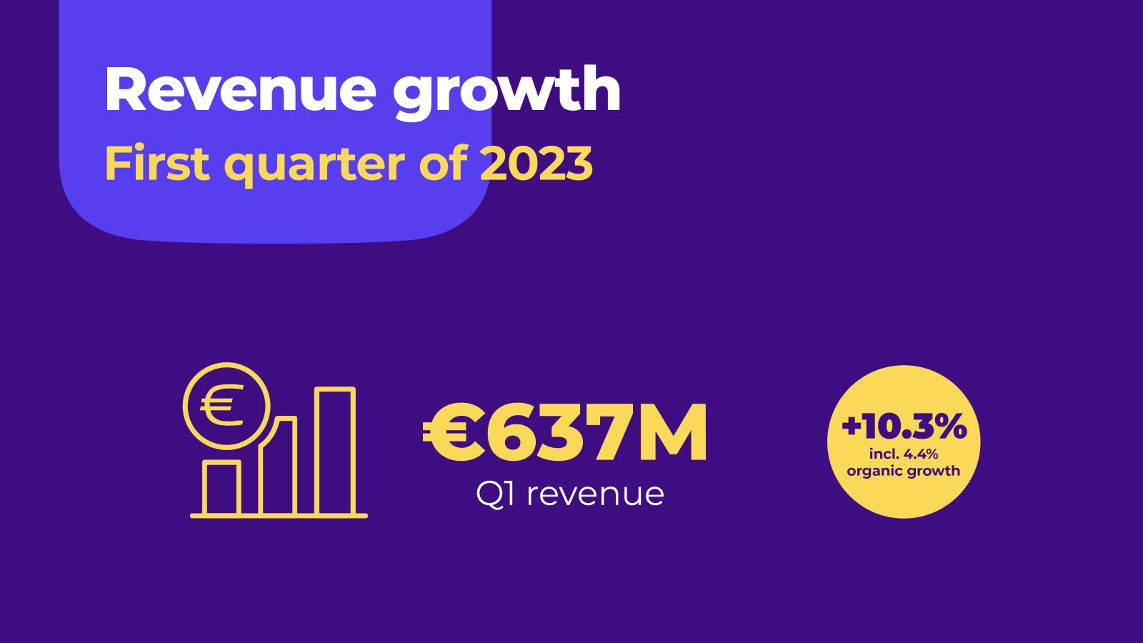 - Products & Solutions (P&S) revenue amounted to €312 million, up1 11.1% driven by the acquisitions made over the past 18 months. On an organic basis², P&S posted a slight increase (up 1.5%) in comparison with Q1 2022, a period of sharp growth.